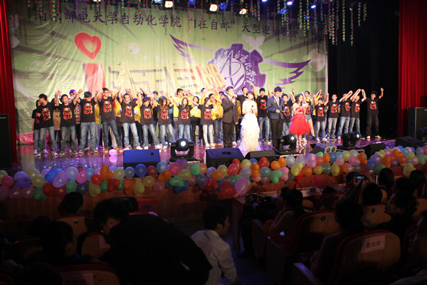 性感妩媚的拉丁舞一开场就抓住了观众的眼球,随后主持人隆重登场,拉开迎新晚会大幕。婀娜美妙的现代舞、夸张搞笑的歌舞剧、喜感十足的甩葱舞、惟妙惟肖的狐狸叫……跳舞的男孩女孩们用青春活力点燃了观众的激情,优美的歌声、动人的情感、紧张刺激的抽奖环节引得掌声不断。力与柔的结合,武术与音乐的完美搭配,弦乐四重奏……为观众献上了一份视听盛宴。13级辅导员秦昌建、杨中婕老师用歌声和朗诵表达了对新生的美好祝福。晚会还特别邀请了新生杯篮球赛的队员和教练来到现场,黄建龙老师代表学院为他们送上了蛋糕,祝贺他们取得的好成绩,更是肯定他们在赛场上顽强拼搏的精神,晚会现场弥漫着暖暖的爱意。最后,一曲师生合唱的《相亲相爱一家人》更是将晚会推向了高潮,表达出了自动化人的凝聚力和对学院的归属感。精彩的迎新晚会在院学生会中干们的帅气舞蹈中圆满落幕。