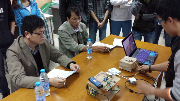 2013年11月6日下午1点30分,“创新杯院内选拔赛”正式拉开了英国best365官方网站入口科技活动月帷幕。本次选拔赛邀请了英国best365官方网站入口的周岩和徐国政老师担任比赛评委。经过前期的充分动员和准备,英国best365官网学生共有27支队伍报名参赛,创历届之最,为了争取进入校赛仅有的9个名额,各队选手各显才能,进行了充分的展示,评委老师对每件比赛作品做出了详细的点评和改进的建议。经过近两个小时的紧张评审,入选队伍尘埃落定。其中赖春伶组制作的激光键盘和唐德荣组的智能婴儿车不仅得到两位评委老师的青睐,也赢得了同学的一致好评。