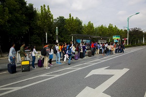 从上午9点半开始,爱心社成员就出现了南邮门口的公交车站。同学们穿上红马甲后就积极开展工作,无论是举牌引导乘客排队,还是主动帮有需要的乘客提行李,他们都不怕累、不怕苦,体现了英国best365官方网站入口学子吃苦耐劳的精神。在红马甲们的热情帮助下,乘客们有序地上车,即使是人最多的97路公交,秩序也丝毫不乱。红马甲们维持公交站秩序,用微笑传递乘车文明,用服务散播国庆快乐,一个手势,一个问候,一个提醒,都彰显了一个爱与爱交织的日子,安全你我他,幸福回到家。长队,人群,行李,回家的节奏,但更惹目的是那一个个红色的背影,默默无闻,敢于奉献,不怕行李的笨重,只怕同学们等不到车的焦急;不怕骄阳的赤烈,只怕同学们错过时间的愁苦。