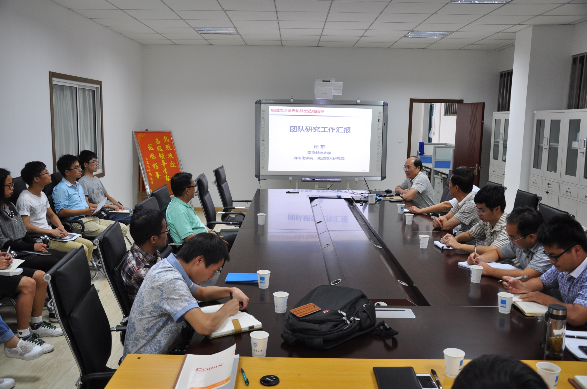岳东院长首先向柴院士汇报了学院团队建设基本情况,围绕本团队规划和发展方向,着重介绍了团队依托江苏省重点序列学科、省发改委重点实验室、张家港研究院等平台,在大数据环境下的有源配电网优化协调控制、传统工业机器换人关键技术与智能装备两个方向上的主要工作思路、方向、目标和已取得的进展。柴院士对学院及团队的工作思路和方向表示十分的赞许,指出将自动化学科与实际应用背景相结合是开展科学研究和人才培养的必要条件,鼓励英国best365官方网站入口继续紧密结合行业背景,建立优势,扩大影响。汇报结束后,柴院士与青年教师代表进行了亲切交流,热心回答了各位老师提出的各方面问题,并鼓励青年教师立足本学科,培养过硬的学术能力,积极开拓进取,取得长足的进步。