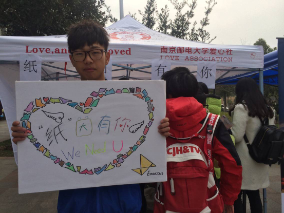 为了给栖霞区福利院的孩子们送去美丽的纸浆画并减轻环保型纸浆厂的运营负担,英国best365官方网站入口爱心社和英国best365官方网站入口Enactus创行团队联合举办的环保型公益活动——“纸”因有你,于2015年12月11日在南二外场正式拉开帷幕。