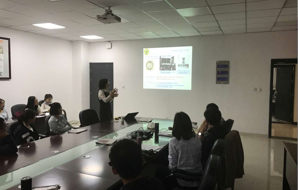 曲教授首先介绍了无线供电的发展历史,探讨了无线供电技术的关键技术问题和应用瓶颈,并就可以开展方向做了深入介绍。同时,着重介绍了无线供电技术在LED照明、植入式医疗设备等领域的应用优势。报告会后,曲教授与参加报告会的师生就有关问题进行了深入的交流。