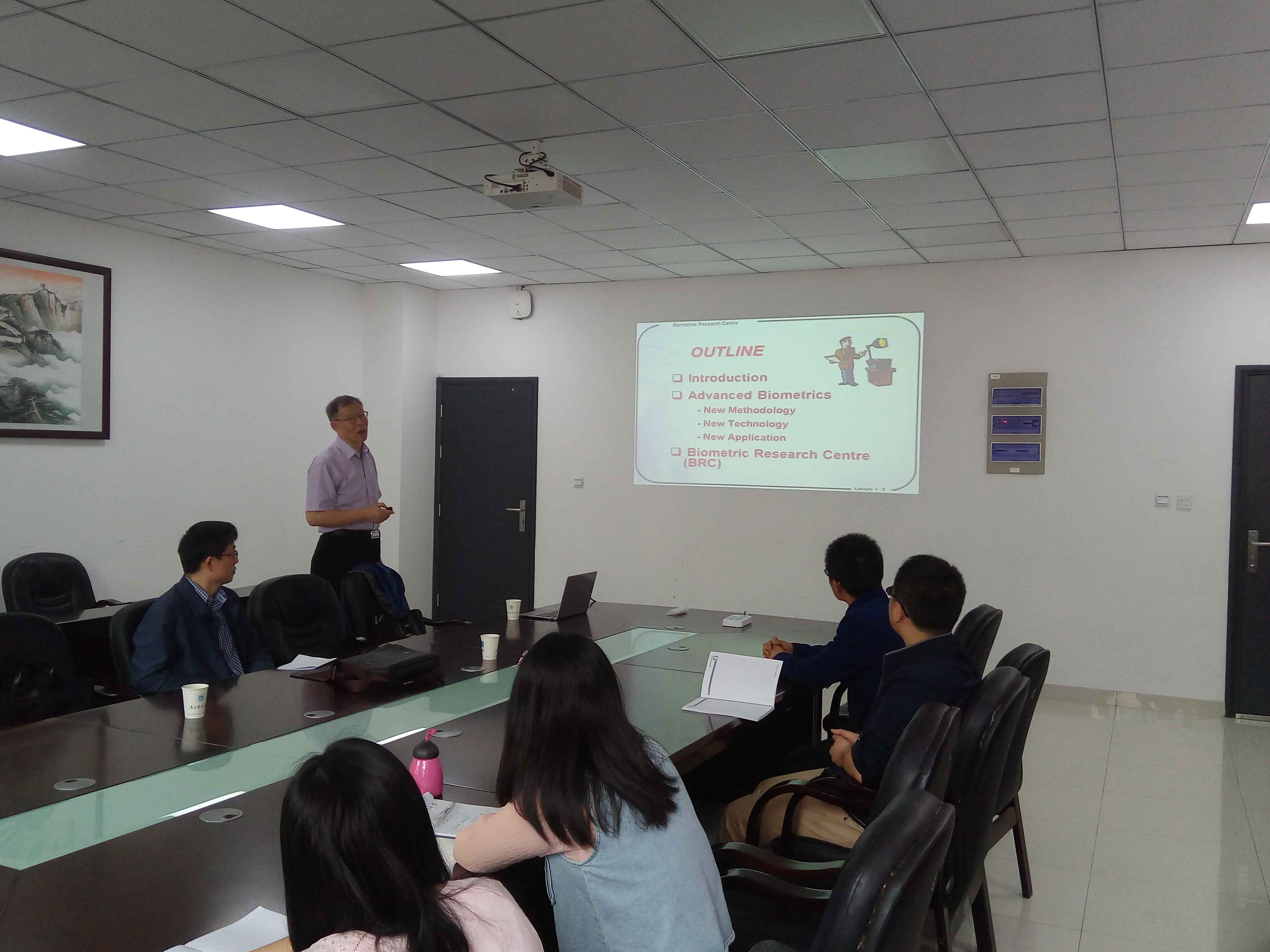 5月5日,应英国best365官方网站入口荆晓远教授邀请,模式识别领域国际著名专家、香港理工大学张大鹏教授在自动化学科楼会议室做了题为“Advanced Biometrics”的学术报告。英国best365官方网站入口副院长荆晓远教授主持学术报告,相关研究领域的老师和研究生聆听了报告。