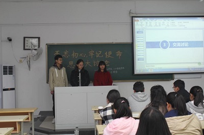 之后,各小组展开热烈讨论,各抒己见,分别表达了对“不忘初心、牢记使命”和“江苏高质量发展”等热点问题的看法。比如在教育方面,有小组认为人才适当北流,可以减少南北教育差异;在文化方面,有小组提出江苏需要保持对非物质文化遗产的保护,守护江苏这片古老土地的文化财富;在经济方面,有小组提出江苏的经济发展应该注重稳扎稳打,在引进新兴产业的同时切莫忘记根本,不能急于求成;在环境保护方面,有小组提出我们在发展过程中必须注重生态环境保护,既要金山银山,也要绿水青山。最后,分团委秘书处副主席陈勇杰和宋伏阳分别上台发表了自己的观点,陈勇杰认为为了江苏更好的明天,我们在仰望星空的同时也要脚踏实地,应当于平时生活学习中提升个人能力和个人素养;宋伏阳认为我们在学习生活中,除了着眼课本,还应该关注江苏时政,关心民生,不忘初心,并希望18级各班级团支书和组宣委会后在各自班级组织开展相学习活动,进一步深入学习习近平总书记系列重要讲话精神,用自己的实际行动助力学校“双一流”建设。