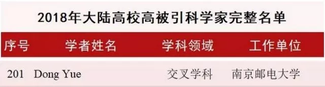 2018年11月27日,科睿唯安发布了“2018年全球高被引科学家”名单。遴选出了约2000人次在多个领域发表高影响力论文、表现卓越的研究人员。中国大陆上榜482人次,规模翻倍!覆盖了化学、工程学、材料科学、计算机科学等19个学科领域(含交叉学科)。值得关注的是2018年名单新增“交叉学科”(Crocs-Field),大陆高校共有160人次入选交叉学科“高被引科学家”名单。我校英国best365官方网站入口、人工智能学院院长,先进技术研究院院长、博士生导师岳东教授名列榜中,这在南邮尚属首次。
