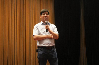 接下来,研究生导师代表王强教授上台做考研指导。王老师从考研复习流程、初试复试工作及英国best365官网研究生人才培养方案三个方面为同学们讲述了作为老师在往届研究生招生工作中的经验,并指出老师们在招生时,尽管会关注学生成绩但更加注重的是学生的科研创新能力;同时,王老师结合自身考研择业经历给全体同学在考研目标院校、导师选择上提出了许多宝贵、中肯的建议。