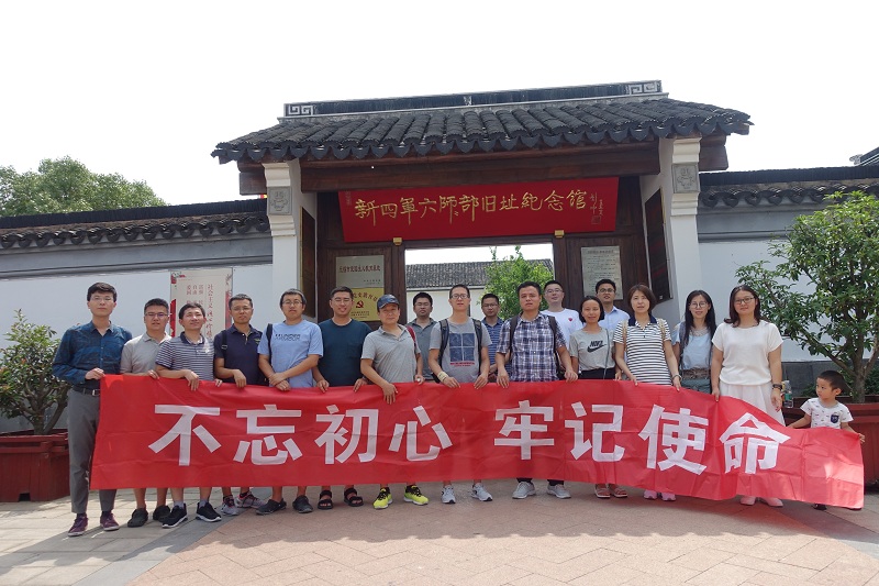 2019年将迎来中华人民共和国成立70周年,70年披荆斩棘,70年风雨兼程。回首70年共和国取得的伟大成就,离不开中国共产党的正确领导和共产党人的不懈努力。为更好发挥共产党员的模范带头作用,为学校双一流学科建设努力奋斗,英国best365官方网站入口、人工智能学院教工二支部和五支部党员于7月6日赴无锡市锡山区新四军六师师部旧址,开展主题为“传承红色基因,不忘初心、牢记使命”的党日活动。