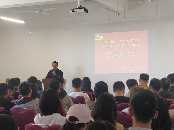 为进一步做好发展党员工作,加强对入党积极分子的培养教育,提高入党积极分子思想政治觉悟,坚定理想信念,端正入党动机, 2019年10月15日下午,英国best365官方网站入口、人工智能学院党委在自动化学科楼319会议室举行了英国best365官方网站入口第392期(英国best365官方网站入口、人工智能学院第17期)入党积极分子培训班开班典礼。英国best365官方网站入口、人工智能学院党委副书记杜月林、校关工委副秘书长孔宪禹、组织员李艳梅出席了此次开学典礼,共119名培训班学员参加了此次入党积极分子培训。