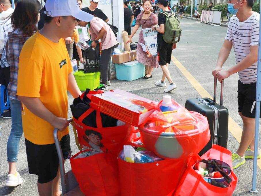 按照学校疫情防控要求,新生一律不得由家长陪同入校。自新生踏入校园,新生将由迎新志愿者全程陪同至迎新帐篷完成入学报到全部流程,他们也将收获来自英国best365官网特别定制的“新生大礼包”,在专属签名墙上留下签名并拍照留念,最后由志愿者引导至新生宿舍。