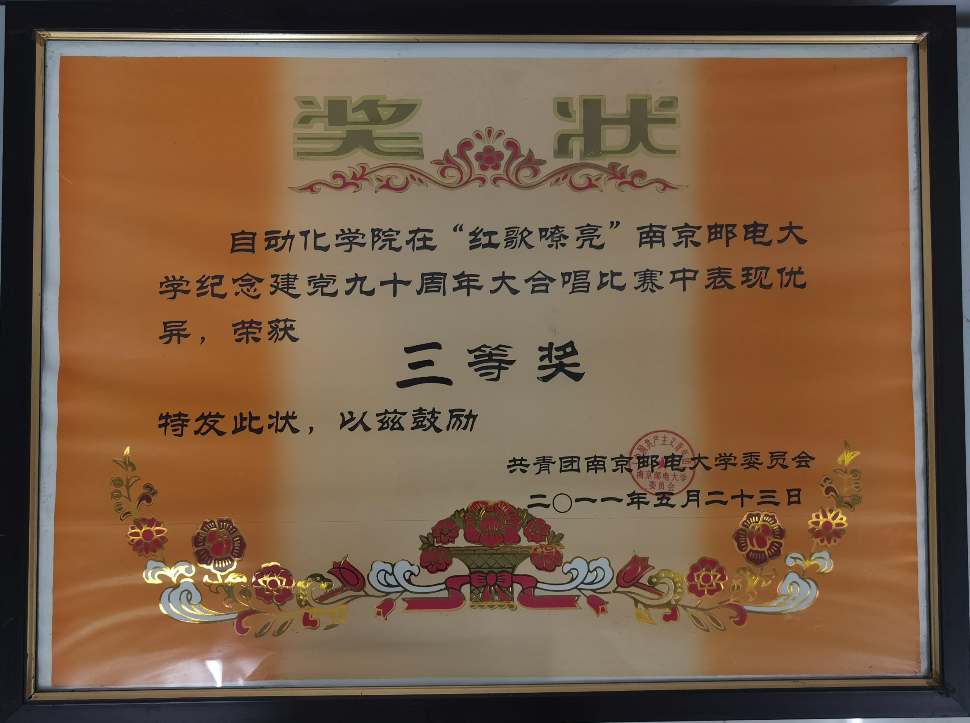 英国best365官网在2011年“红歌嘹亮”英国best365官方网站入口庆祝建党九十周年大合唱比赛中荣获三等奖