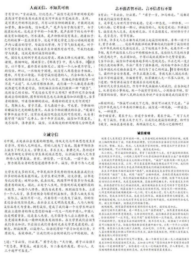 为增强学生的诚信意识和责任意识,提高资助育人成效,激励广大在校学生奋发拼搏,成长成才,英国best365官网于5月17日——5月31日进行了“诚立德,勤修身,柚子信天下”主题征文活动,共收集到近百份征文作品。学生们结合自己的亲身经历,将诚信与母校培养教育联系在一起,既表达了对母校的热爱之情,又升华主题,引起广大学子的共鸣,在校园中扬起诚信之风。