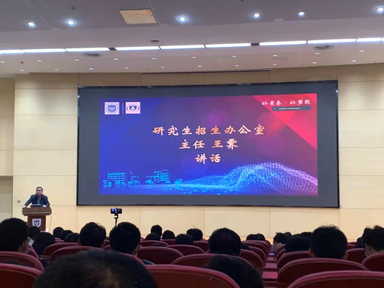 研究生招生办公室主任王霁从考研环境、院校选择、考研流程等方面进行了交流分享,提醒同学们理性看待考研人数逐年递增现象,根据自身定位和规划合理选择报考院校,了解把握考研流程和时间分配。同时,王主任由我校研究生招生实际出发,结合详实的数据,介绍了本校考研在报考、就读、未来就业等阶段的优势,希望同学们拓宽视野,理性择校。