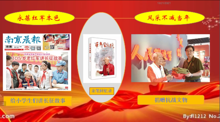 随后,颜老师为同学们介绍了在南邮历史上有着重要地位的人物——秦华礼先生。秦老出生于1913年,于1932年参加红军。他是我校的首任党委书记、院长,为南邮的创建与发展做出了重要贡献。秦华礼同志是我国邮电高等教育事业的拓荒者,是学校办学特色的奠基者,也是“南邮精神”的倡导者和力行者,他为党和人民的教育事业作出的重要贡献,将被每一位南邮人铭记,也将永远镌刻在南邮的历史画卷中。