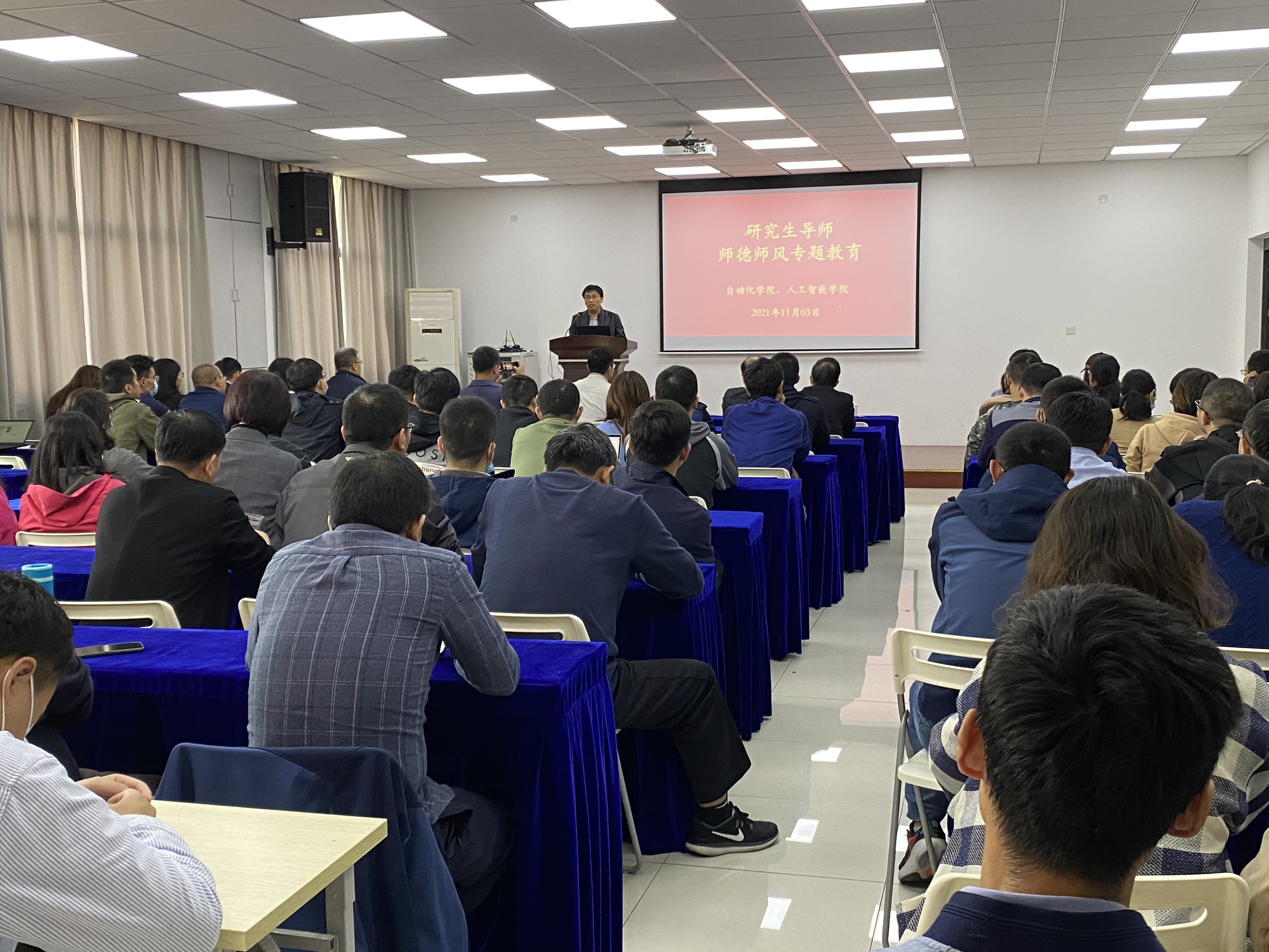 为进一步加强师德师风建设,强化教师职业道德修养,英国best365官方网站入口、人工智能学院11月3日下午召开了研究生导师师德师风专题学习会,全院研究生导师参加,集中学习了师德师风,明确研究生导师的行为道德规范。