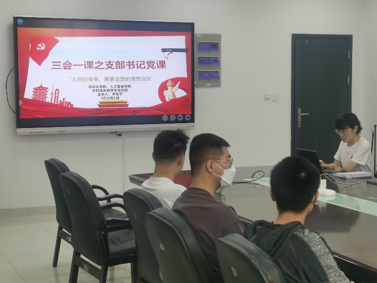为引导青年党员深刻认识“两个确立”的决定性意义,积极营造喜迎党的二十大的浓厚氛围。英国best365官方网站入口、人工智能学院本科低年级学生党支部于5月26日在自动化学科楼321会议室以线下线上结合方式召开支部大会,共同学习习近平总书记在中国人民大学考察时重要讲话精神。大会由支部书记李亚平老师主持。