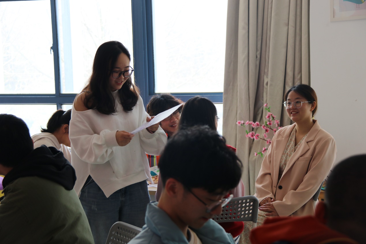 一番自由讨论结束后,小组成员选出代表,畅所欲言。聆听的同学或表示深有同感,或表示惊喜万分,欢声笑语的同时也不吝惜自己的掌声。同学们言辞各异但都蕴含着发光的品质,邵老师勉励同学们每个人都应该坚定自己的信念积极地拥抱生活。