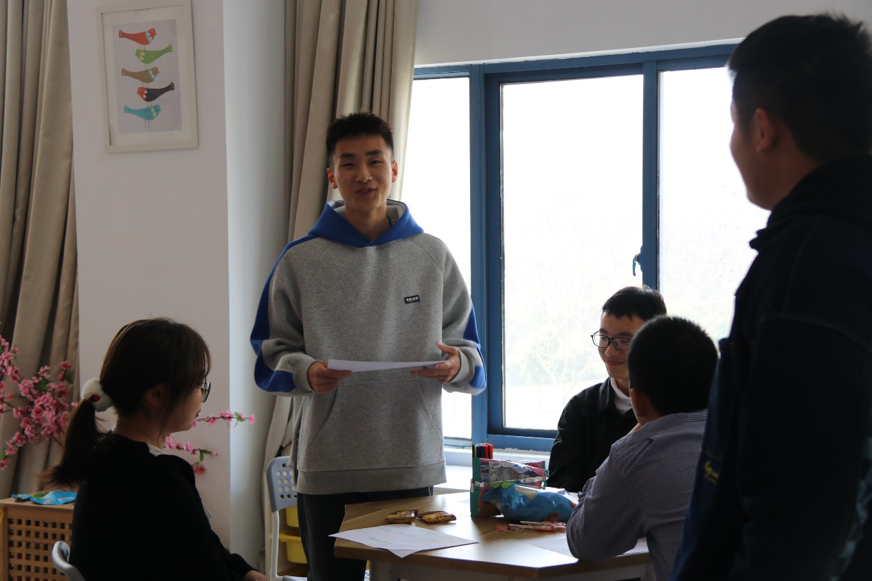 第一部分,破冰游戏—我们的生日。邵老师介绍游戏规则,要求在不能说话的前提下,使用手势与动作或者口型,按照生日的月份排列成一个大圆圈。在主持人确定小组成员位置准确无变化后,按照生日顺序,每5人形成一个小组并推举组长。通过简单的互动,大家渐渐熟悉起来,打破了先前的拘束,活动气氛变得融洽起来。