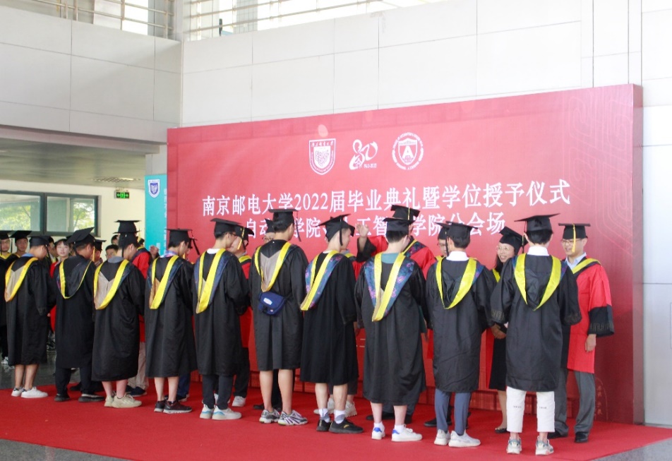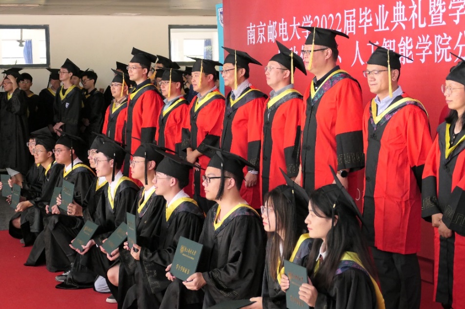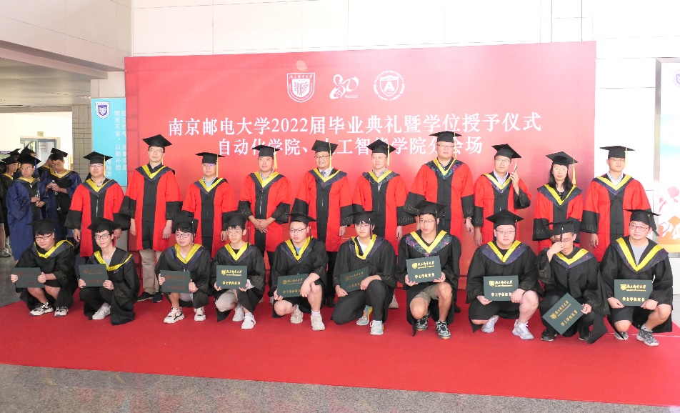 最后,师生集体合影。2022届全体毕业生将继续铭记“信达天下,自强不息”的南邮精神,永存家国情怀,永葆奋斗姿态,在青春赛道上奋力跑出好成绩。