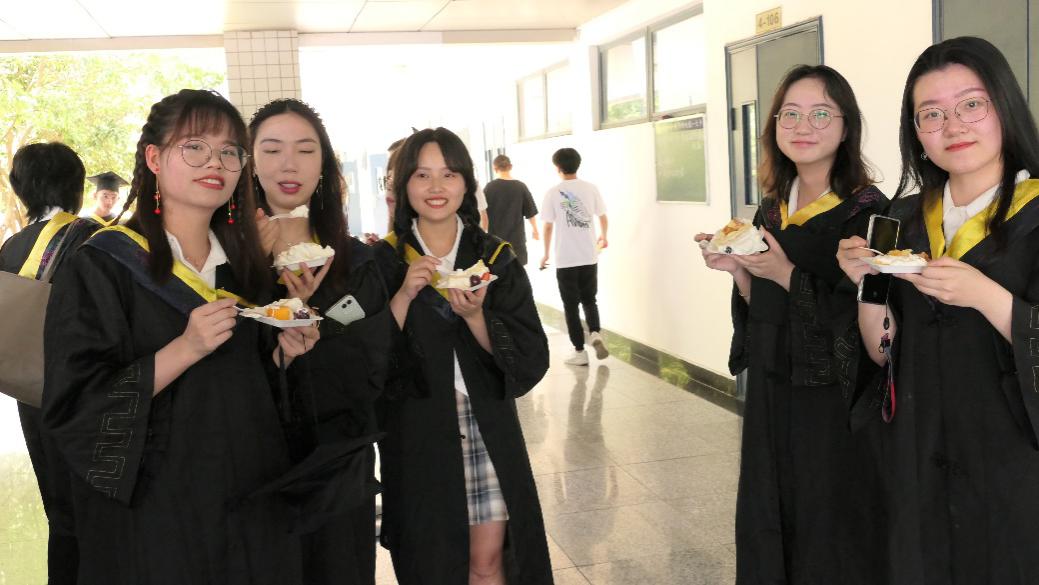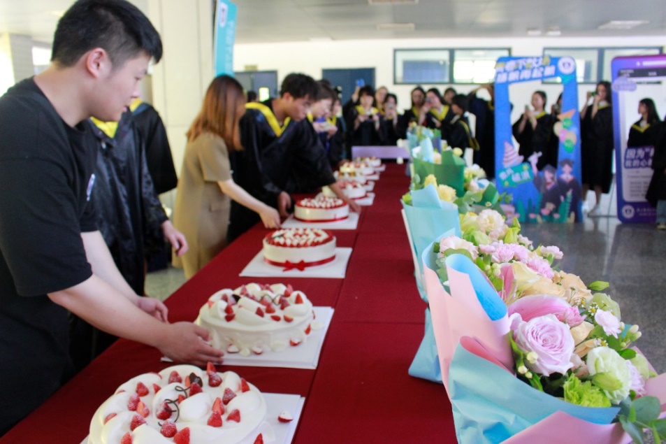 仪式结束后,学院为同学们精心准备了蛋糕和鲜花。仪式进程中频频响起毕业生雷鸣般的掌声,充分表达了对母校的深深眷恋和对未来的美好憧憬。